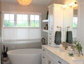 ![]() ![]() | Who does design build bathroom remodeling in Potomac Maryland? | May 2023 | A design-build master bathroom renovation with great home improvement ideas like a custom glass shower enclosure with many ceramic tiled niches and a bench and a stand alone soaking tub with gold colored fixtures and finishes and much more. Located in Potomac Maryland and high quality craftsmanship provided by Talon Construction | $90k | North Potomac, MD |